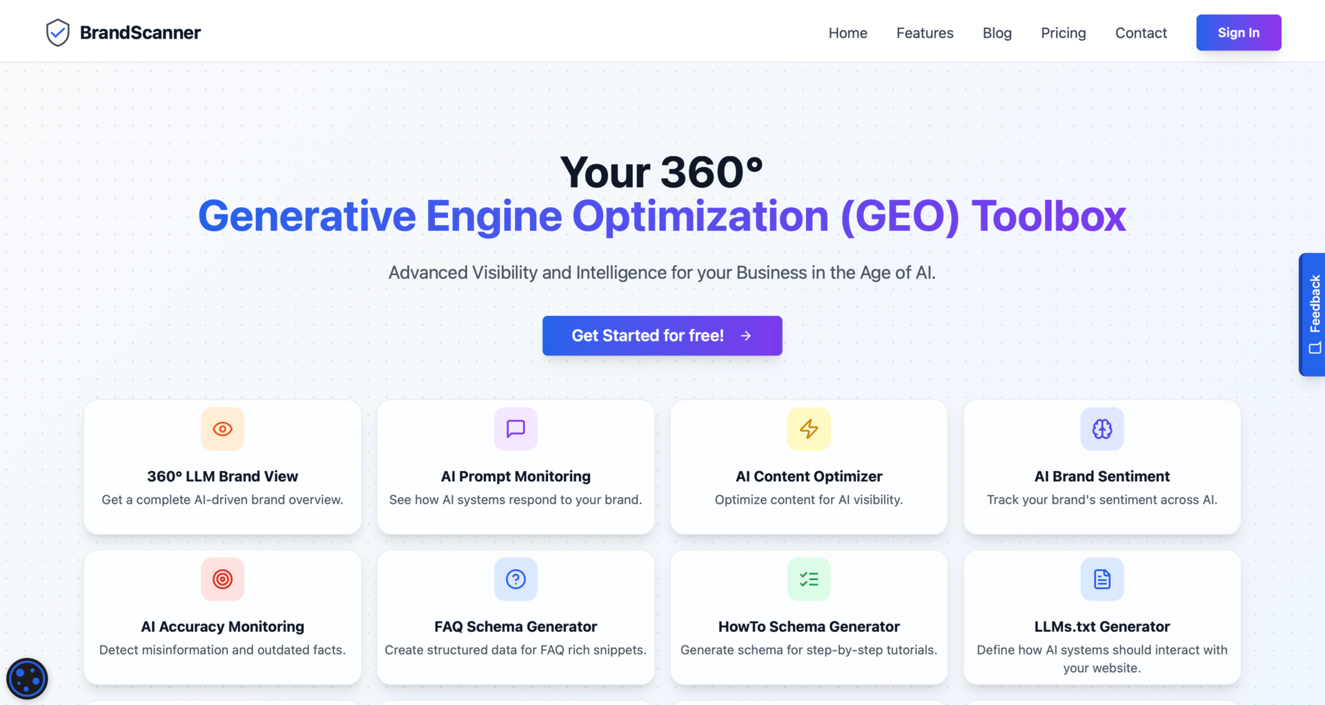 BrandScanner is a Generative Engine Optimisation toolbox that gives you advanced visibility and intelligence for your business in AI search.