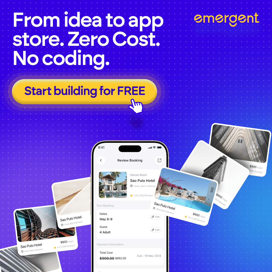Emergent helps you transform ideas into production-ready applications with AI. Build web apps, mobile platforms, and custom software through simple conversation, no coding needed.